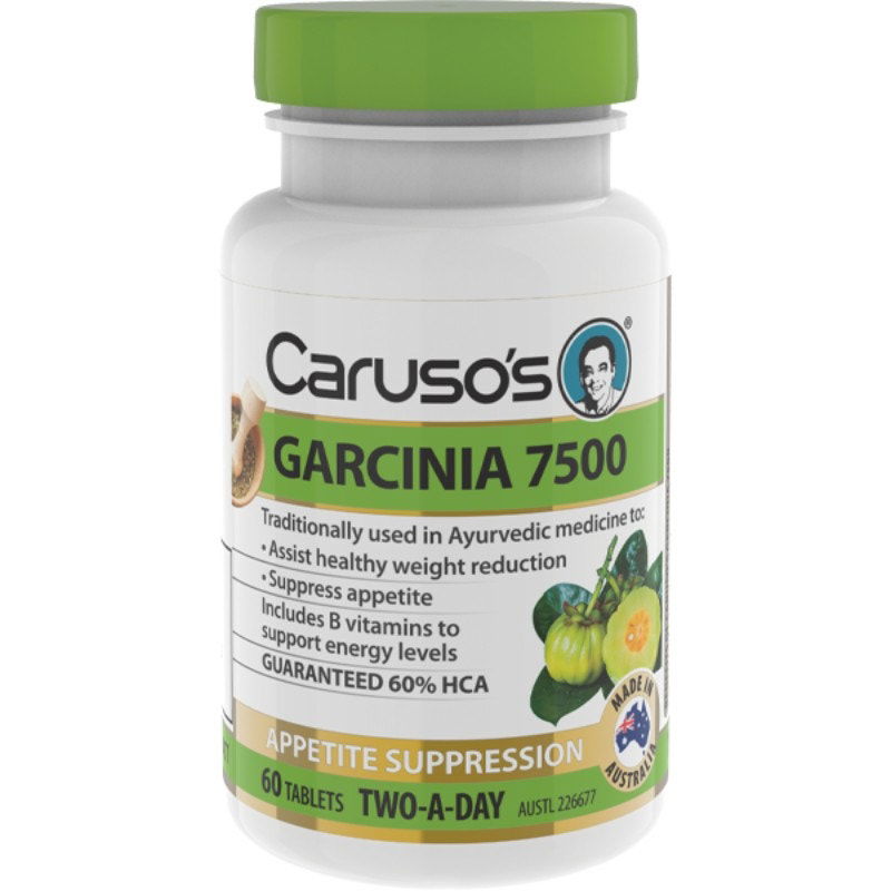 Garcinia cambogia naturally contains the active constituent Hydroxycitric acid (HCA). Caruso's Garcinia 7500 is guaranteed to contain 60% HCA and also combines B-vitamins to maintain energy production. Caruso's Garcinia 7500 has been specially formulated to complement a healthy diet and exercise plan.