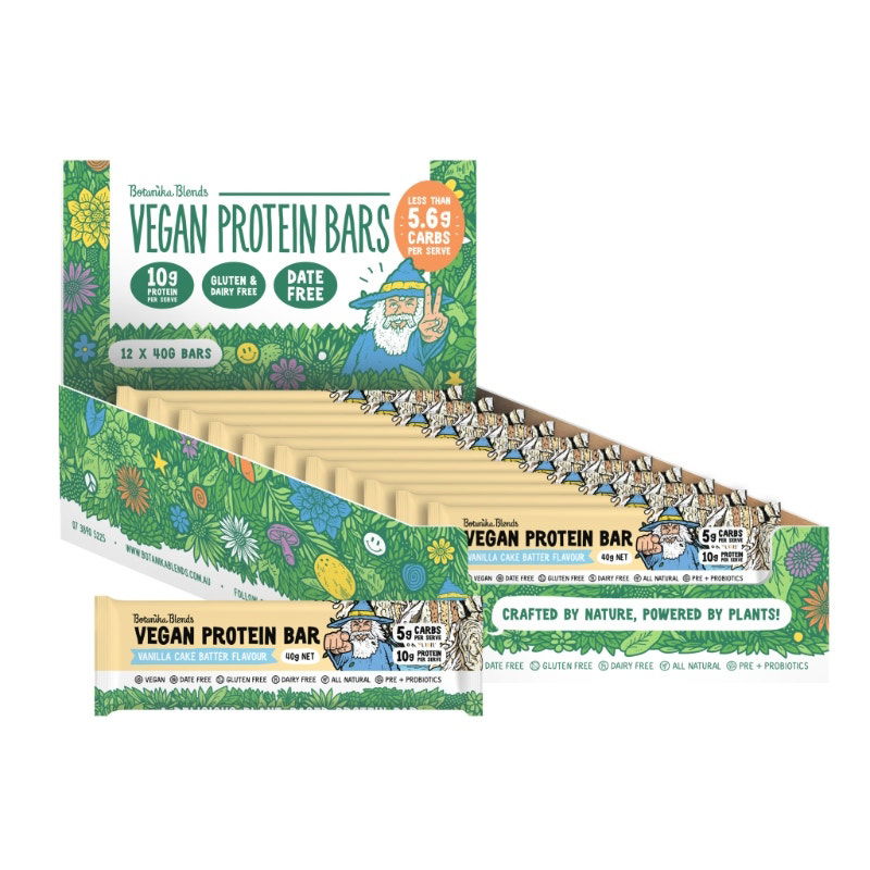 Finally, the wait is over! Be the first to try Botanika Blends Protein Bar ... what a mouthful. A delicious mouthful of plant based protein goodness with nothing like you've ever seen before, that is! This flavour was created from our popular Vanilla Cake Batter Plant Protein